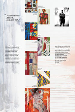 Anita Varadaraju uses a lot of bright colors in her work, so I decided to showcase her love of colors through this unique vertical tri fold mailer brochure. When folded the brochure has a monochromatic color scheme, but when the last fold is opens up there is a pop of color showcasing samples of work. Her style is also very modern and clean so keeping that in mind the brochure has a lot of negative space.